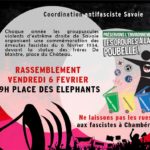 Rassemblement antifasciste 06/02/2026 19:00 – 20:00 Lieu: Place des Elephants, Chambéry Ne laissons pas les rues de Chambéry aux fascistes.