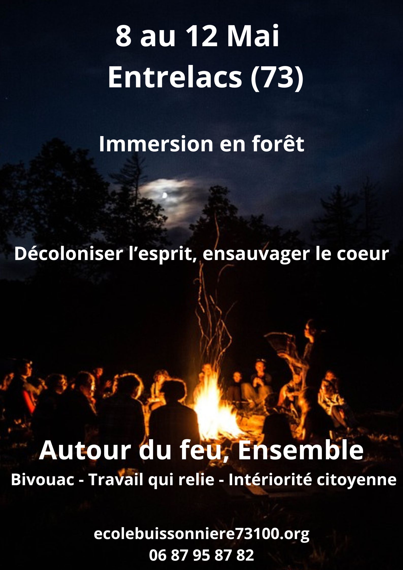 Autour du feu, ENSEMBLE – Immersion en forêt Travail qui relie