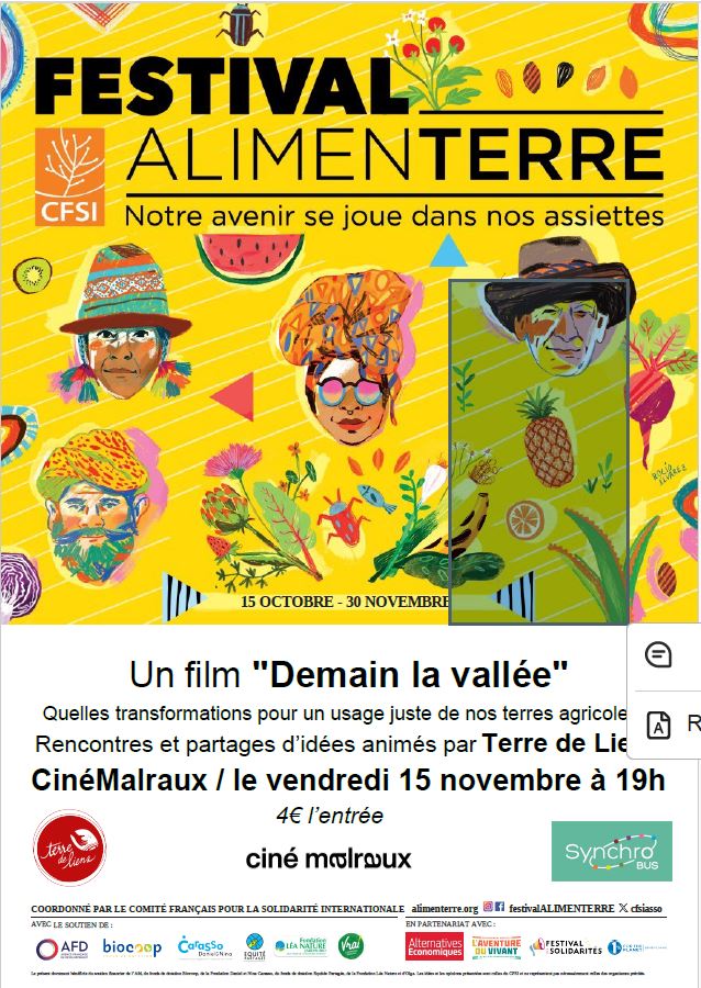 15/11 à 19h, Chambéry à l’espace Malraux : ciné-débat avec le Groupe Local Terre de Liens 73 dans le cadre du Festival Alimenterre, autour du film Demain La Vallée
