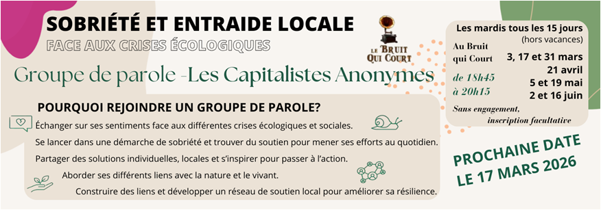Groupe de parole « Sobriété et entraide locale » – Les Capitalistes Anonymes