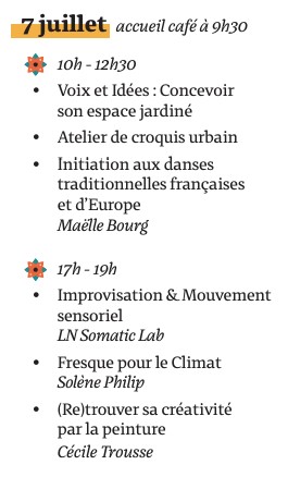 La ruelle verte programme du 7 juillet Détails de l'événement Date: 07/07/2024 10:00 – 19:00 Lieu: la ruelle