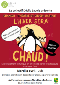 Création sur le climat, « L’hiver sera chaud » à voir le mardi 8 avril à Barberaz.