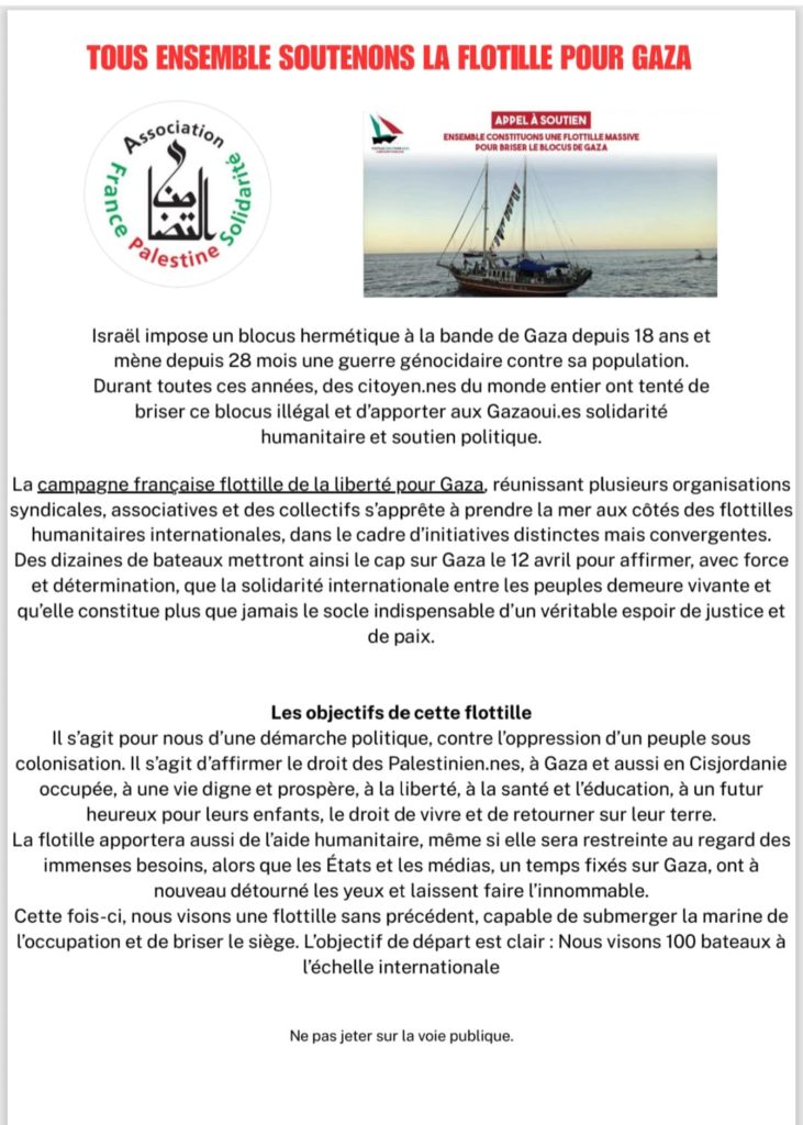 Manifestation de soutien à la Flotille pour Gaza