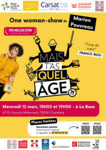 l’association Régie Coup de Pouce vous invite à venir assister à son évènement de rentrée, le spectacle “Mais t’as quel âge ?!?” organisé dans le cadre de la Quinzaine de l’Egalité qui aura lieu du 8 mars au 23 mars.