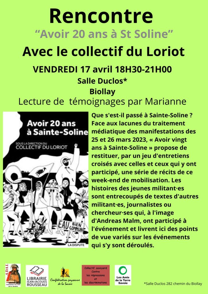 Rencontre ” Avoir 20 ans à Sainte Soline “