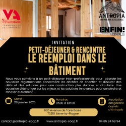 Un petit-déjeuner inter-professionnels pour aborder les nouvelles réglementations concernant les déchets de chantier, et discuter des défis et solutions pour une construction plus durable et circulaire. Une occasion d’échanger sur les enjeux et les solutions innovantes pour construire et rénover autrement !