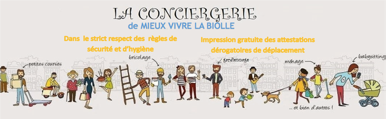 En relais de l’association “à-te-lier”, association en veille pendant cette période, la conciergerie “mieux vivre La Biolle” née pendant le confinement a pris son envol : 140 paniers paysans livrés, 350 plants de légumes livrés 100 masques produits … livraison en véhicule zéro carbone prêté gratuitement par un loueur de la commune